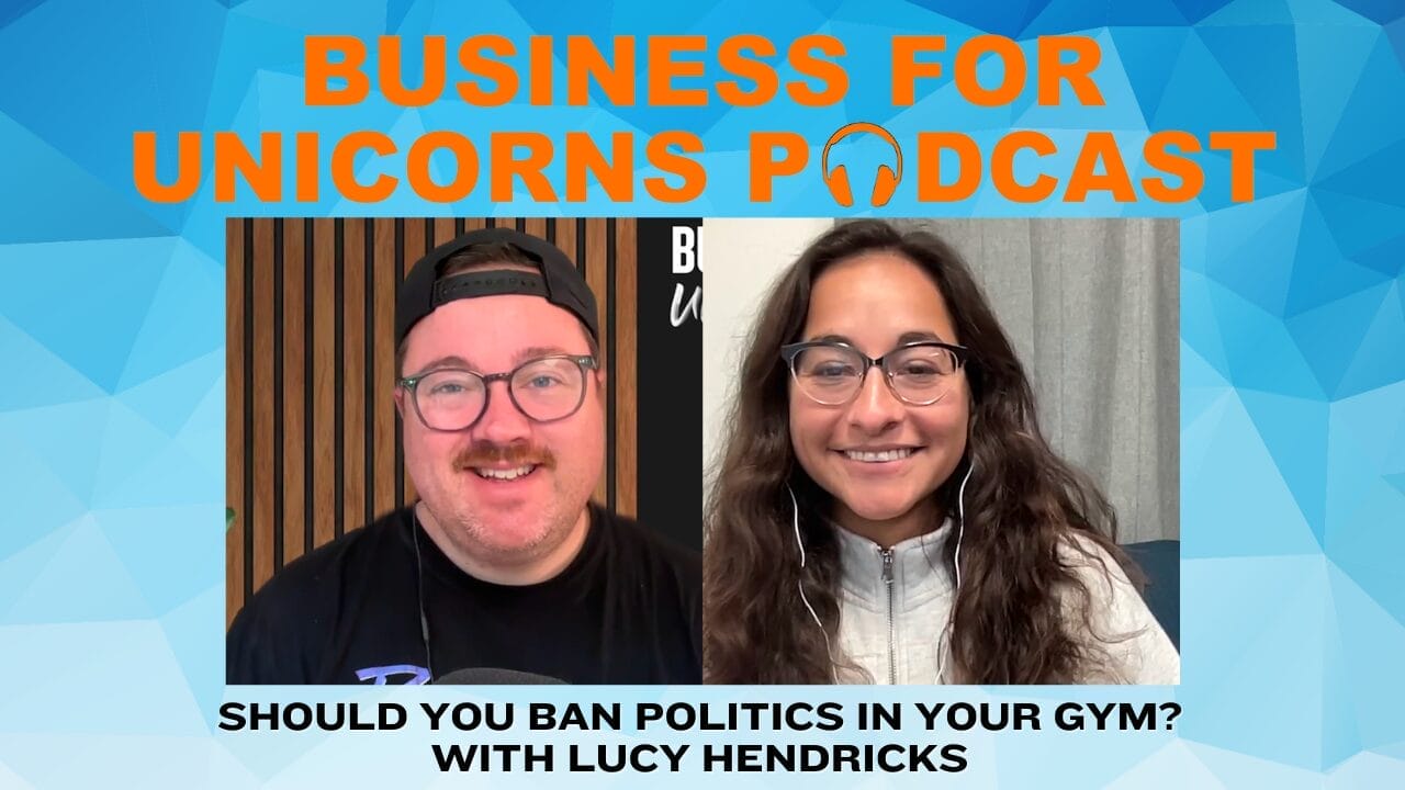 If [00:09:20] you want your gym to be a beacon of leftist or rightist politics or centrist [00:09:25] politics, you go ahead and you plaster those politics on your front wall if you want to. [00:09:30] When we, when I work with Unicorn Society members, and Lucy included, what I tend to recommend, which [00:09:35] I think is probably what best serves the overall business, is that as a [00:09:40] business.